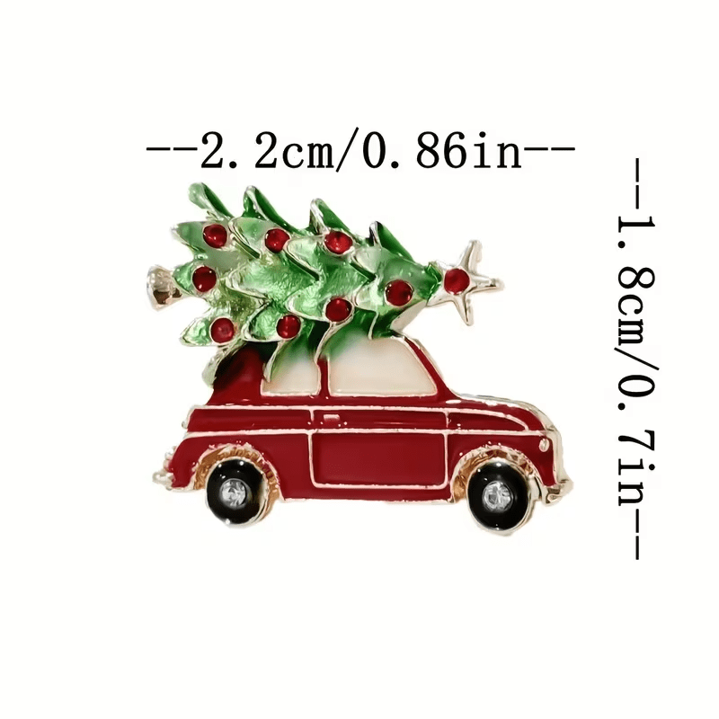 Festive car with Christmas tree enamel pin made with high-quality enamel and a smooth, durable finish. Sized at 2.2 cm (0.86 in) height and 1.8 cm (0.7 in) width, it’s perfect for jackets, backpacks, hats, or holiday outfits. A cheerful accessory and a great stocking stuffer for the holiday season.